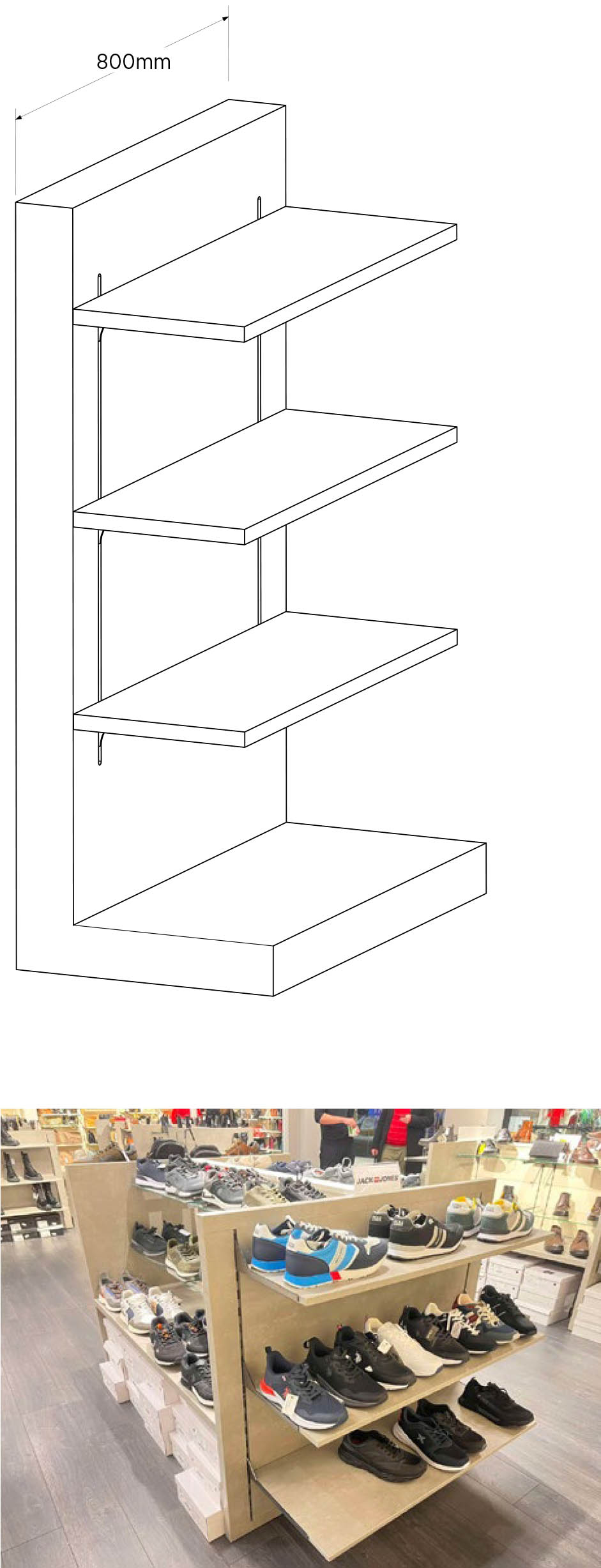 Naše izložbene police čine Vaš prostor estetičnim, stilski prepoznatljivim, funkcionalnim te je u potpunosti prilagođen potrebama Vašeg poslovanja. Možemo ih modificirati sukladno Vašem vizualnom identitetu.